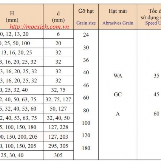 Tính năng nổi bật: Đá mài Hợp kim V1 250.25.32