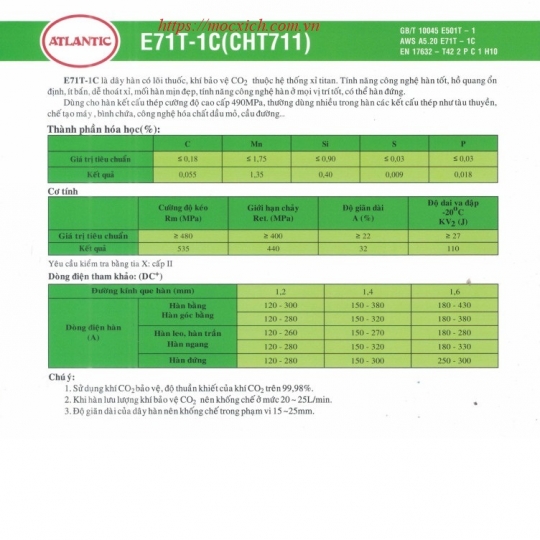 Tiêu chuẩn: E71T-1C