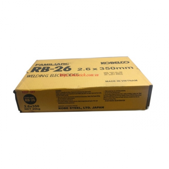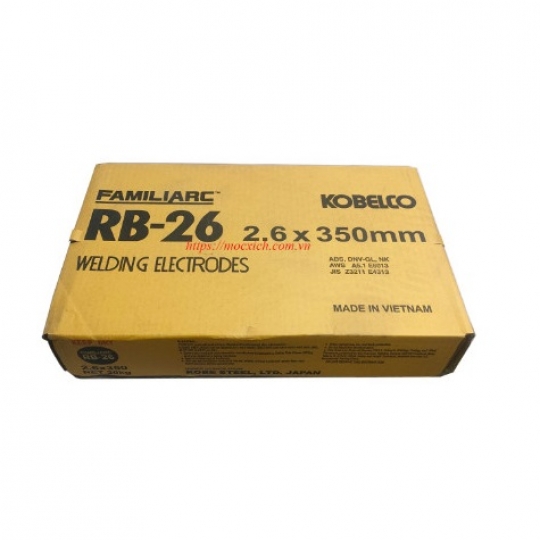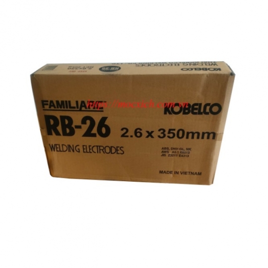 - Que Hàn RB-26 là một loại que hàn điện cực có thành phần Titan cao, thích hợp cho các loại thép có độ căng mỏng cao ở mọi môi trường