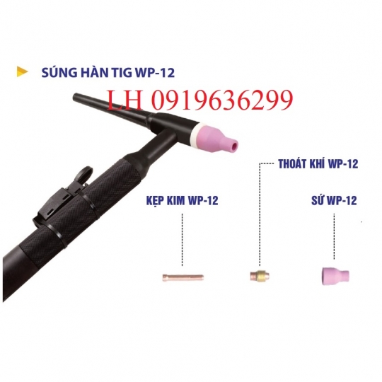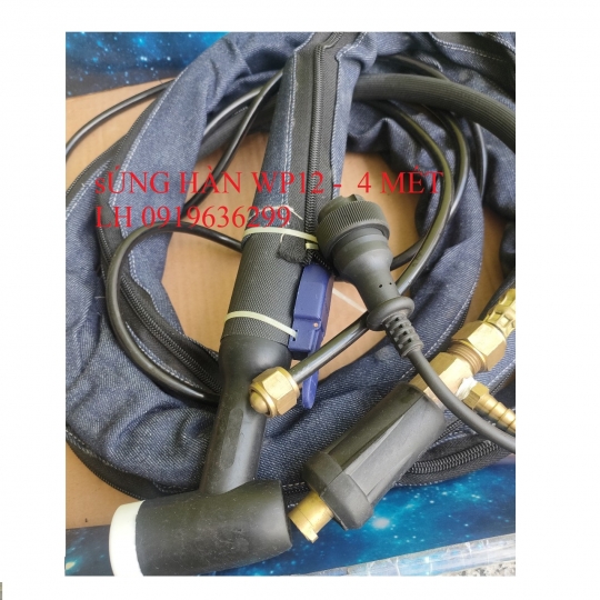 Dây dài 4 mét (làm mát bằng nước), Đầu súng tig WP12, đuôi súng tig WP12, Sứ Wp12, thoát khí.